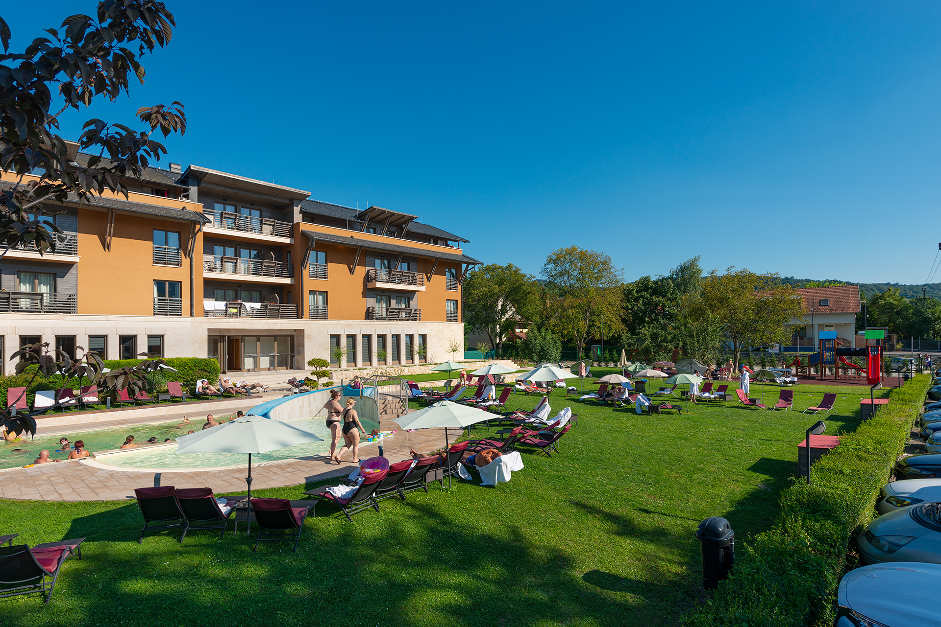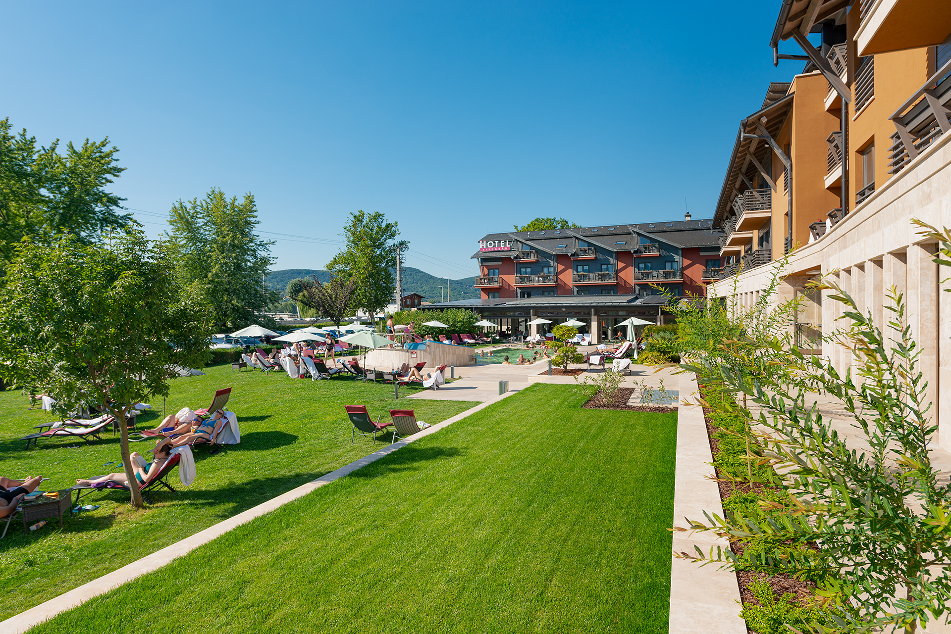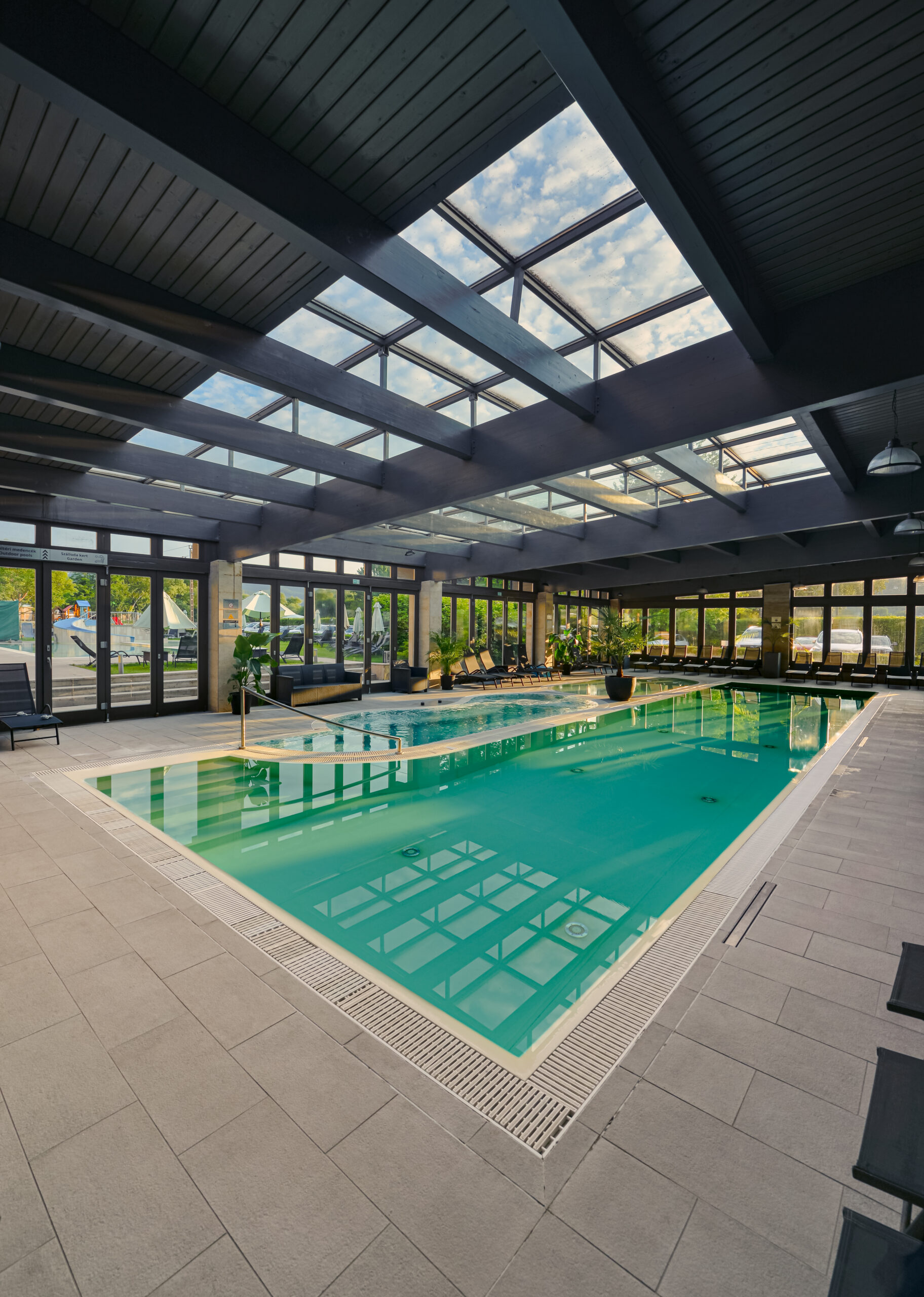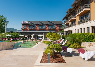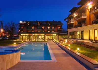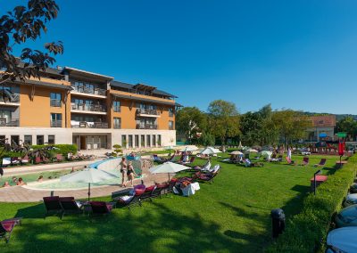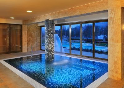 Vnútorné a vonkajšie bazény, detské bazény, vírivky, fínska a infra sauna, parná kabína, fitnes a jedna nádherná záhrada.